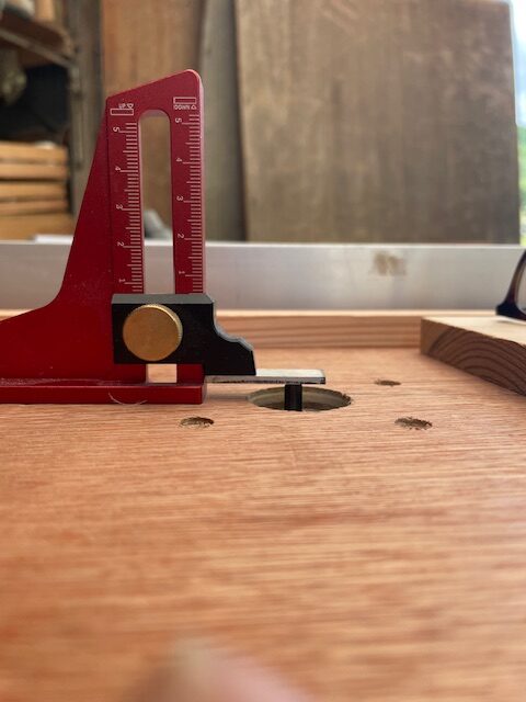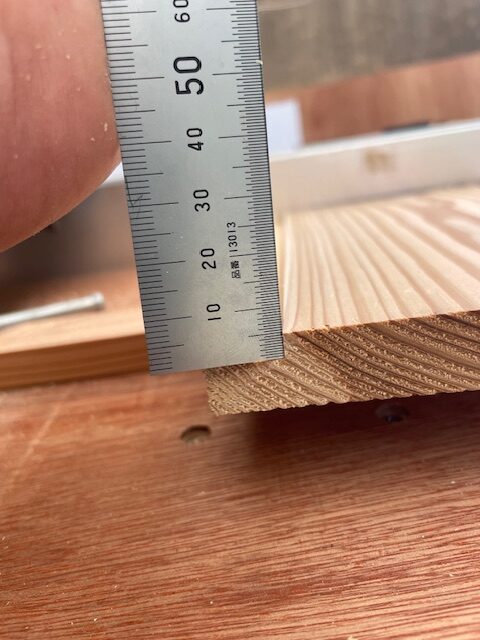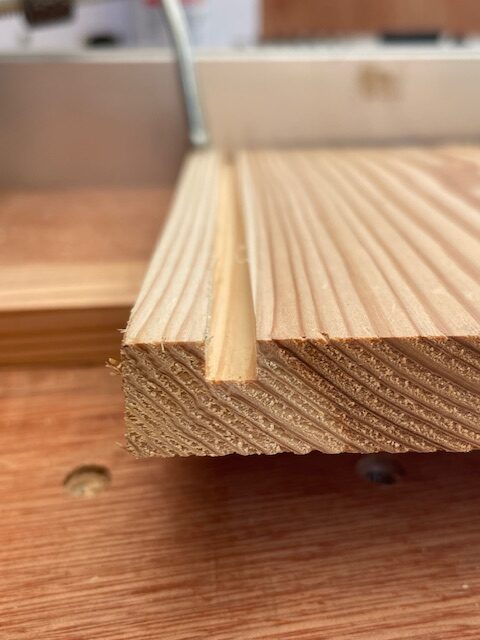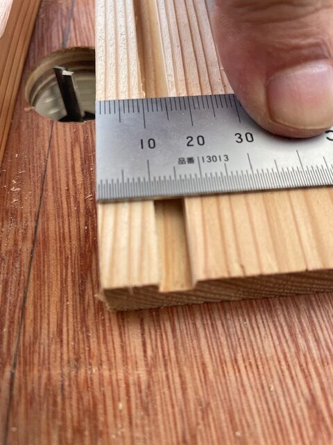 ・5mmのストレートビッドを使って、杉板の端から、1cmの位置に5mm×5mmの溝を掘ってみたいと思います。