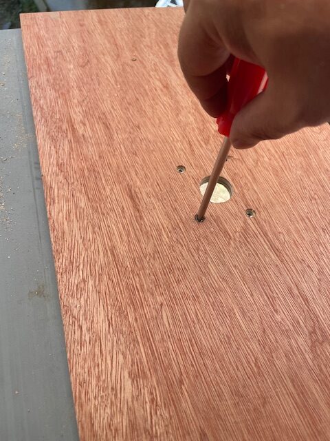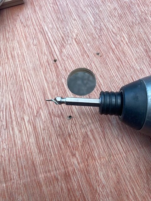 ・ビスが飛び出さないように、皿ザグリビッドで穴を加工する