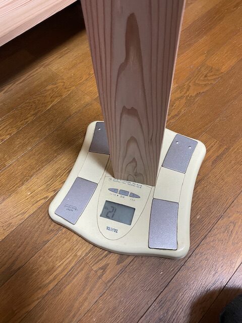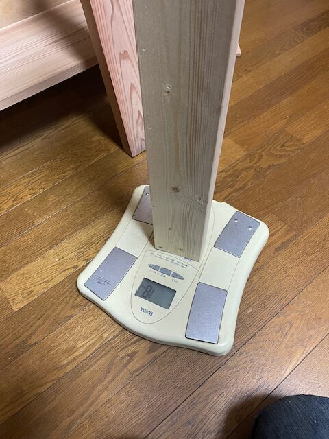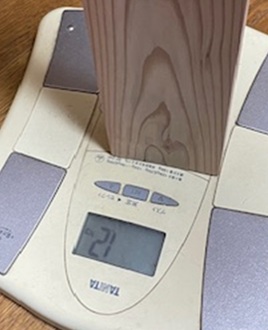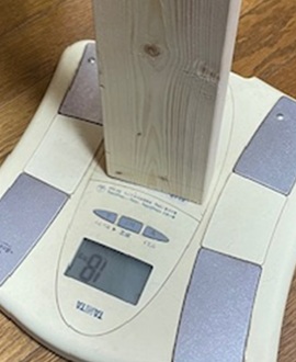 ※2×4 L=91cmで、杉の方が0.6g軽いです。(木材の個体差にもよります)